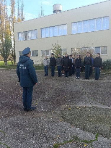 14.11.25 кадеты совместно с сотрудником МЧС Мирошниковым В.В. проходят строевую подготовку